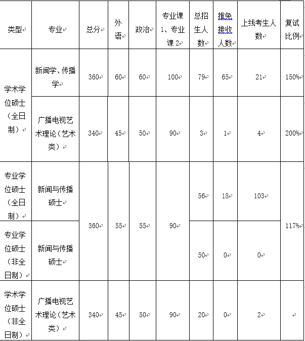 本院广播电视艺术理论(非全日制)、新闻与传播专硕(非全日制)接受调剂,调剂要求1、达到我院的复试分数线。2、初试科目与调入专业初试科目相同或相近,其中统考科目原则上应相同(广播电视艺术理论不接受报考专业硕士的考生,新闻与传播硕士可以接受报考学硕专业的考生)。且需通过原报考专业的国家线。3、有定向培养单位,并在录取前签订定向协议,未签订者不予录取。4、有调剂意愿的考生请于3月28日前向4858美高梅登录中心研究生办公室(学院307)提交纸质的调剂申请和定向单位的同意委托培养函,并在“全国硕士生招生调剂服务系统”开通后在系统上提交调剂申请。5、学院会在4月2日前通过调剂申请并通知考生复试(调剂服务系统会在4月1日下午17点前关闭),调剂复试时间安排在4月4日进行,具体的复试要求及复试安排见复试须知。6、学院会及时在网站上公布调剂录取情况。
